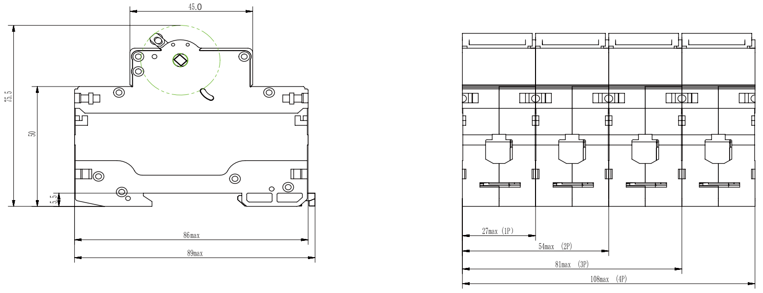 Rated voltage Ue | 1P(250VDC),2P(500VDC),3P(7500VDC),4P(1000VDC) |