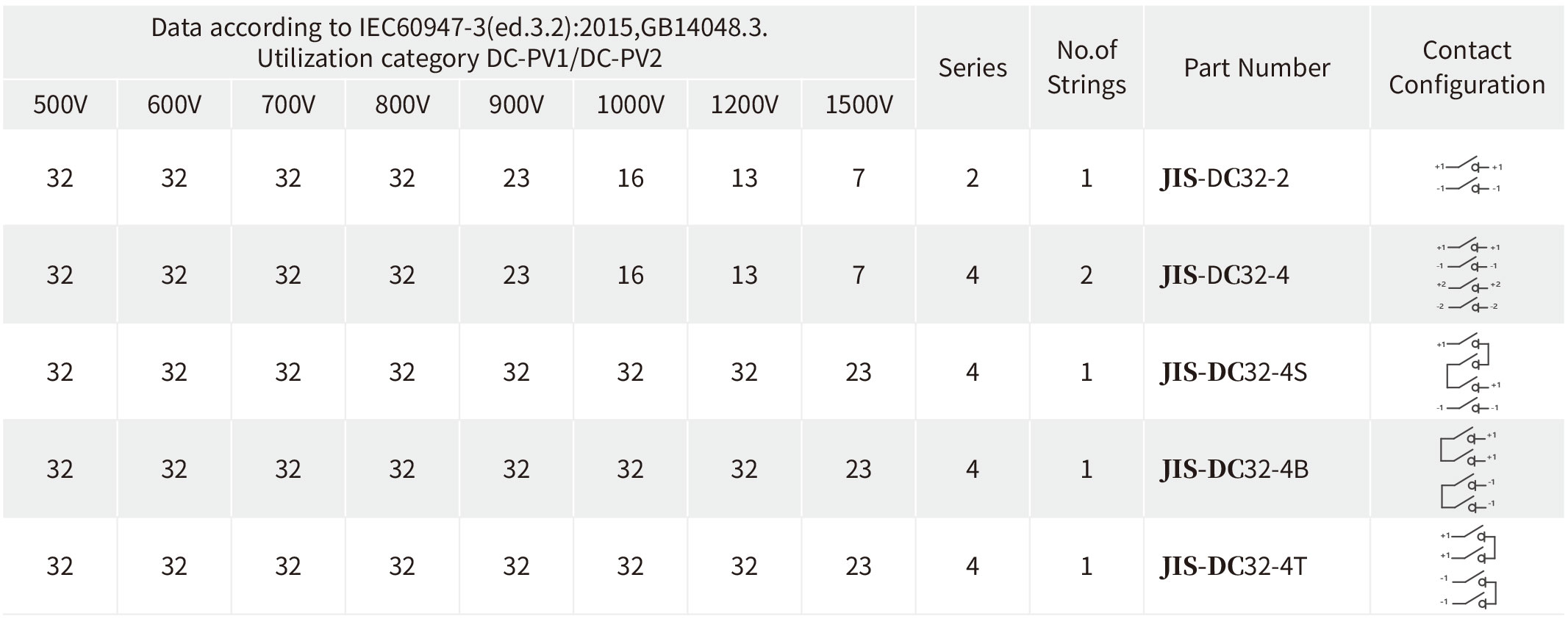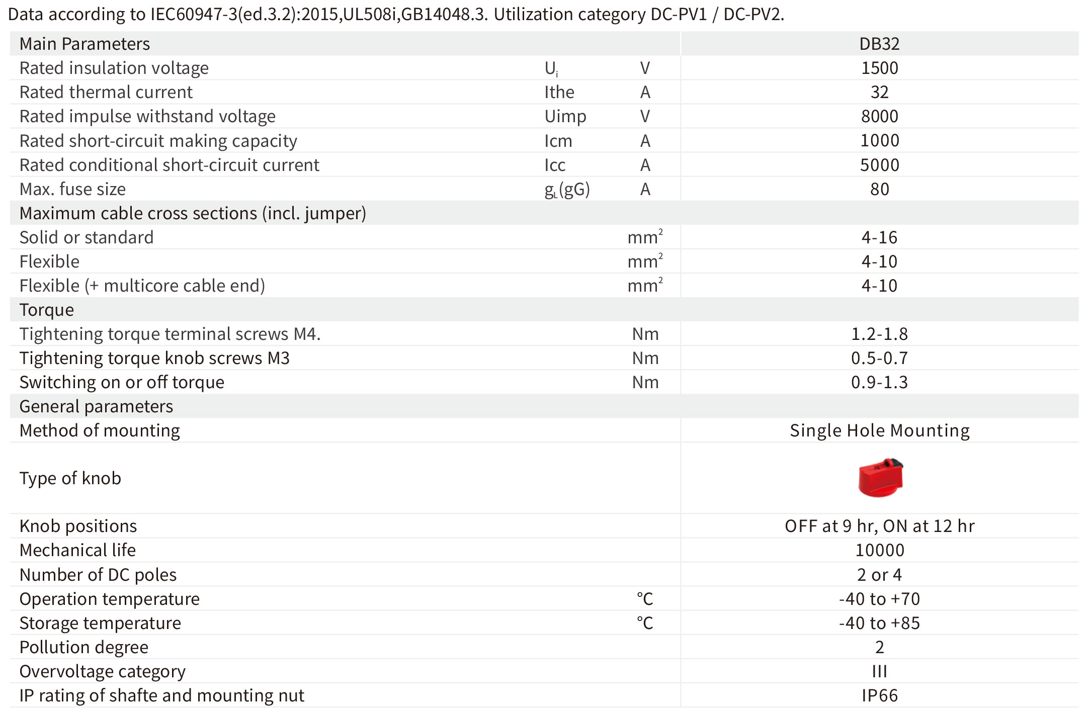 Comply with IEC60947-3(ed.3.2):2015,DC-PV1standard.